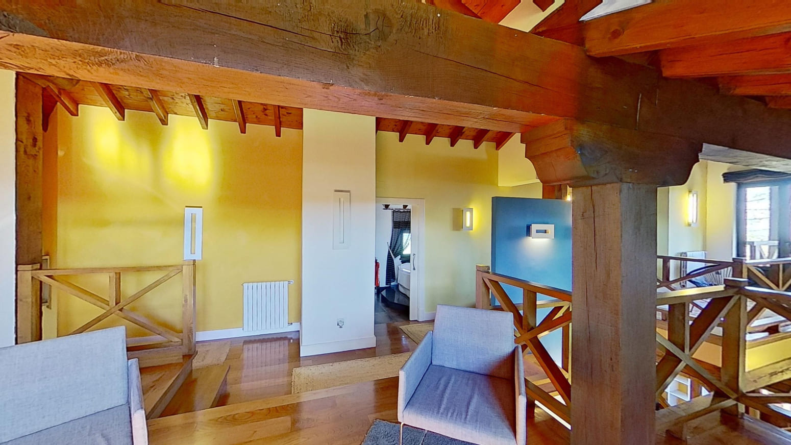 Esta vivienda ha sido construida con materiales de primera calidad, presentando suelos de madera de castaño y cerámicos de TAU que añaden un toque de distinción y calidez a cada rincón.