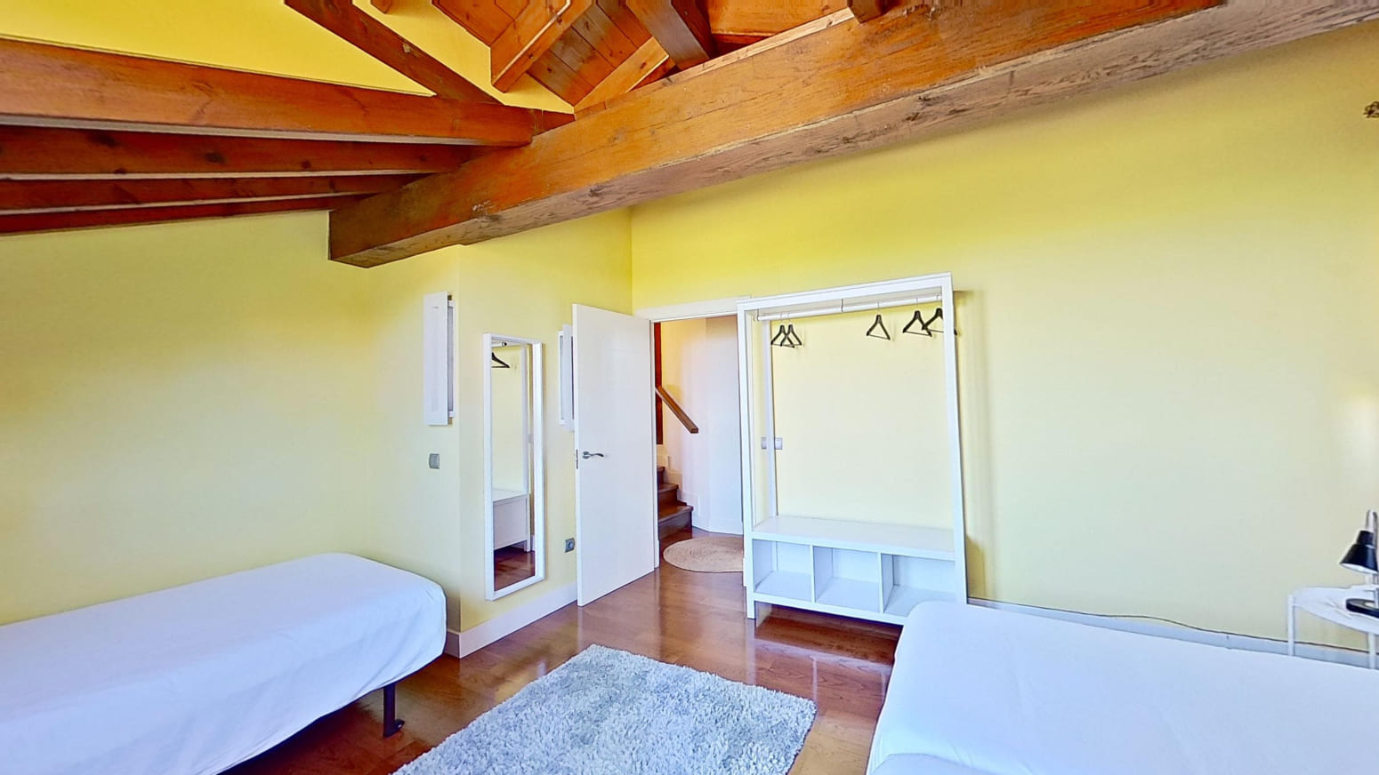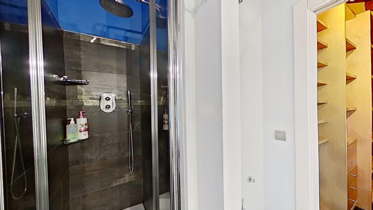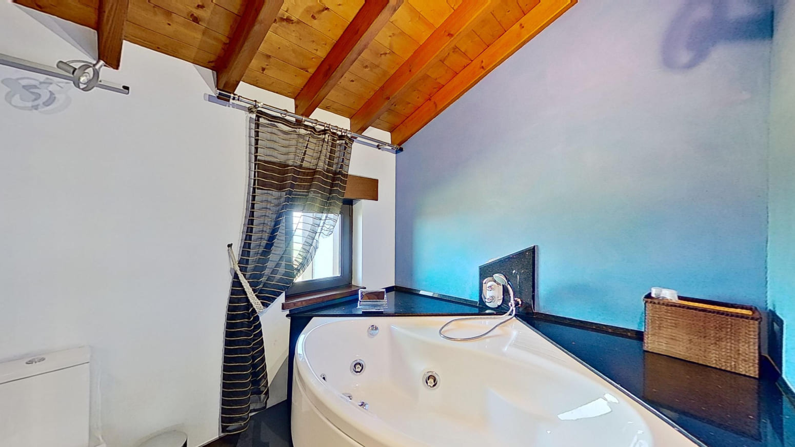 La propiedad está repartida en dos alturas, planta primera y bajo cubierta con techos de madera, en la primera planta se encuentra una amplia y espaciosa cocina modelo Valcucine, el salón comedor con chimenea Stuv de Bélgica lo que le hace una estancia muy acogedor y desde sus grandes ventanales se pueden apreciar las maravillosas vistas al mar, un baño completo y un dormitorio. En la planta bajo cubierta está el distribuidor que da paso a los tres dormitorios, con dos baños completos. Los tres baños de elegantes acabados Porcelanosa, cada uno está equipado con elementos de calidad que aportan un toque de lujo.
