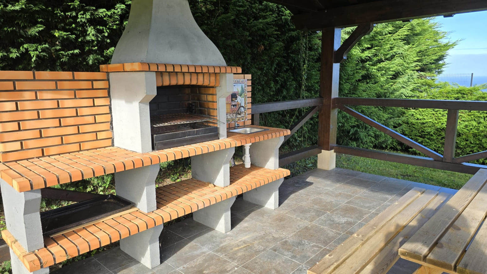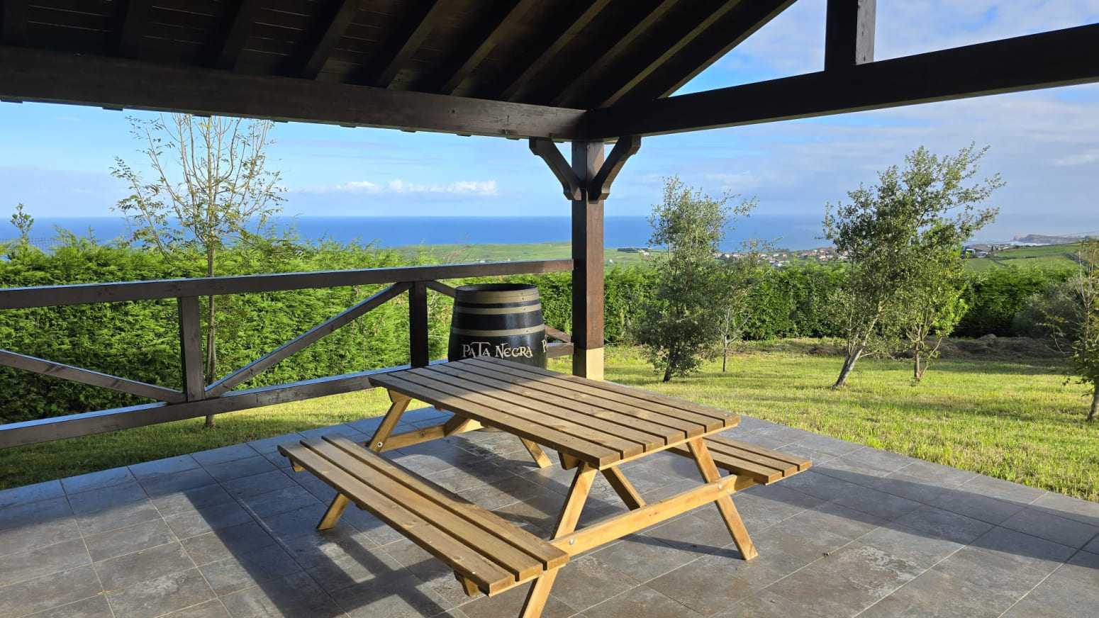 La puerta de entrada, elaborada en auténtico acero corten, da la bienvenida con un diseño moderno y resistente.