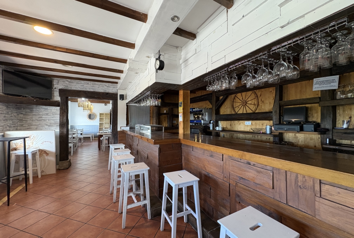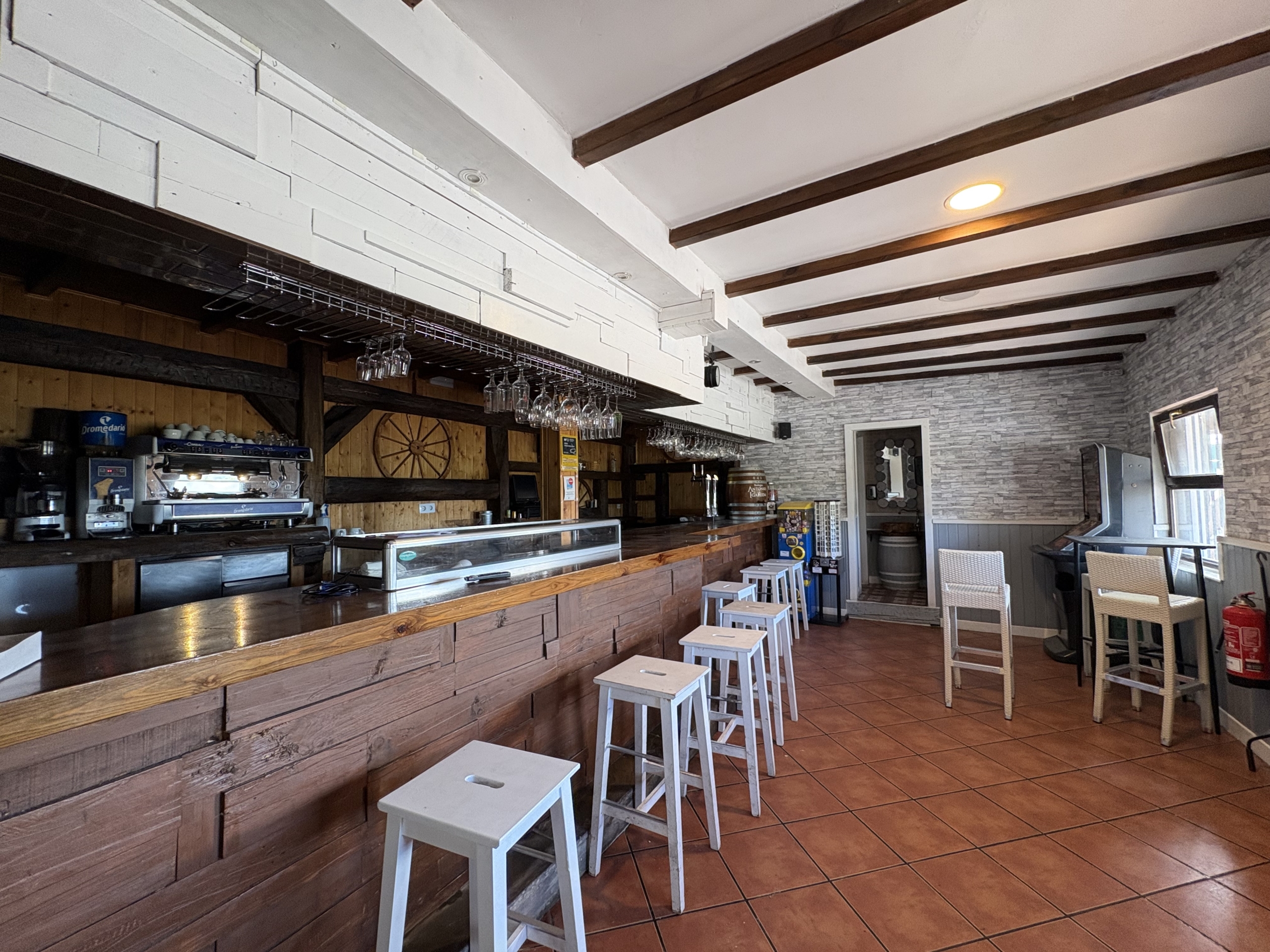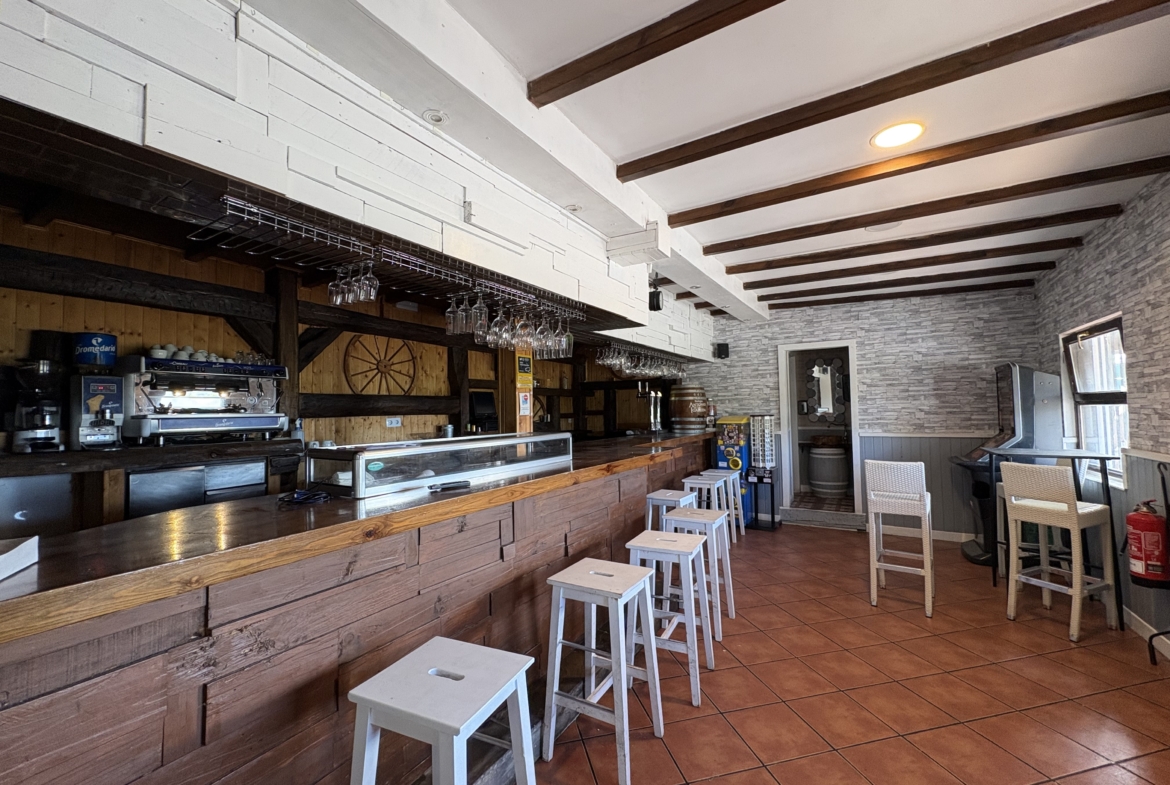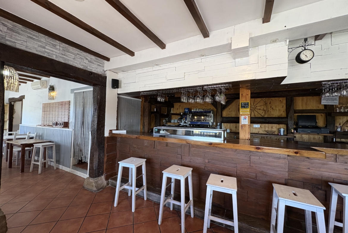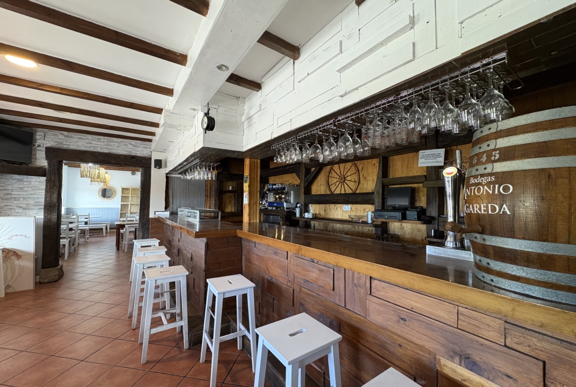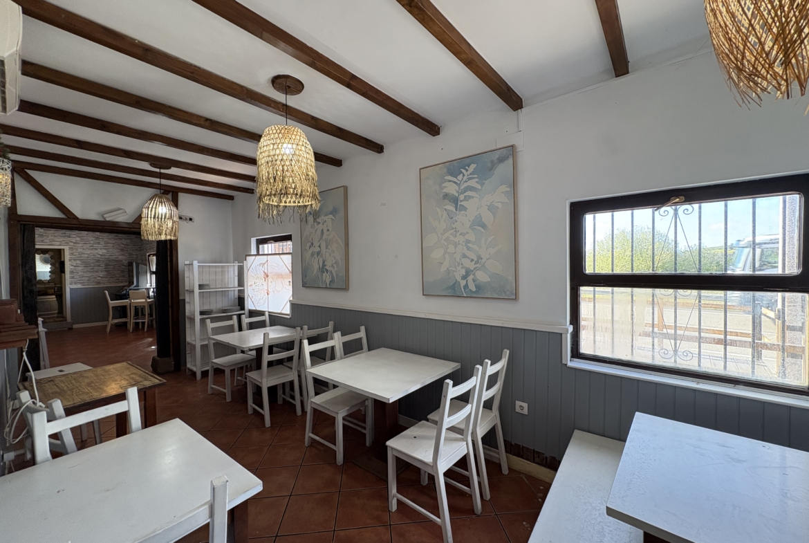 Barra con espacio amplio, terraza al aire libre comedor, cocina equipada, almacén, 2 baños,